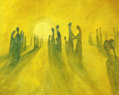 ‘This painting is full of wonder and hope; even those unaware of it are on their way to the fullness of light and love.’ His words in the book, An Artist’s Life After Death.